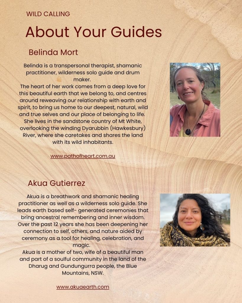 Akua and I are excited to be offering this new collaboration, where we weave together the maps we’ve learnt from our teachers, with our passion for ritual & ceremony, and the wild places- both in nature and within ourselves. Through this journey we reweave ourselves into the vibrational fabric of life and back into our place of belonging to Mother Earth.